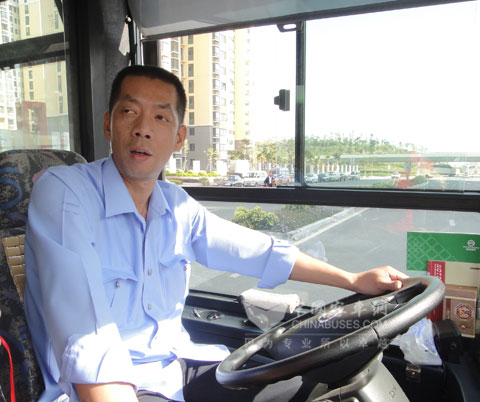 作为厦门本地的十佳企业,厦门金旅一直关注着厦门公交的发展,此次投入试运行的混合动力XML6125JHEV28C型城市客车是金旅专门为厦门市公交量身打造的。其配备欧IV发动机,整车综合排放优于欧IV客车排放标准。该车基于厦门金旅成熟的XML6125JHEV93C型产品平台,采用混联的模式。在该模式下,其发动机的动力由动力管理系统分配,一部分直接驱动车轮,另一部分被用于发电,其使用比例可自由控制。对于客车不同行驶工况的需求,可以通过整车控制单元改变自动离合器的开合状态,从而实现混合动力系统在串联和并联2种结构间的转换。没有变速箱,没有挡位,此车起步时由电驱动,时速达到20公里时发动机才出力参与整车驱动,从而大大节省燃油消耗。当天在车辆行至高林居住区末站时,记者采访了负责此班车执勤的驾驶员简志文,他告诉记者,与这辆车相处其实已经有近半个月了,该车辆整体性能稳定,操控轻松、简便,自动档配置每天不用踩离合器,大大减少了驾驶疲劳,还有起步、刹车平稳,而且根本闻不到柴油味,个人很喜欢开这种混合动力车,开起来比较舒服。
