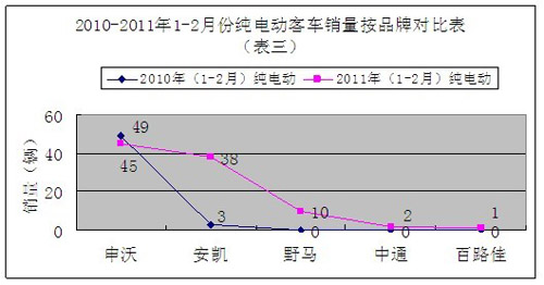 根据2011年全国各地登记注册车辆显示,2011年1-2月份全国新能源客车累计销售397辆,其中混合动力客车销售301辆,电动客车(含无轨电动车)销售96辆,同比分别销量增长177辆,132辆和44辆,增长率为80%、78%和84%。相关数据见表一: