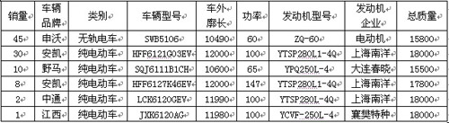 2011年前两个月,申沃蝉联全国电动客车销售冠军,累计销售45辆(无轨电车),占全国市场份额的46.9%,是销量第二名的1.18倍,第二名安凯紧随其后,销量为38辆。