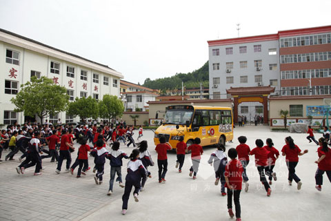 当一辆辆海格快乐校车被送往受捐学校时,所经之处有一个接一个的隧道、苍茫的山林、险峻的峭壁,以及无数的弯道,但所到之处也都是老师、孩子们灿烂的笑脸,还有周围老乡们开心的笑容。