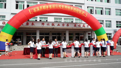 本溪市教育局和本溪满族自治县相关领导为校车启动仪式剪彩
