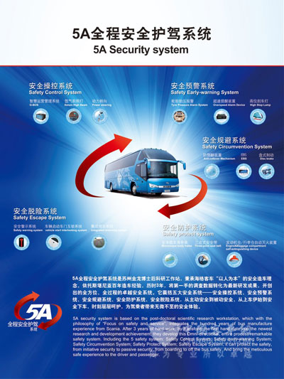 海格的全系列产品,从主动到被动对安全都给予了充分考虑:结构上采用异型钢管球笼式车身,内饰为阻燃材料,装配了电涡缓速器、行车纪录仪及ECAS系统,采用了ZF动力转向机和盘式制动,进口自动间隙调整臂以及进口ABS、ASR(防侧滑)的批量使用,更是从源头杜绝了安全隐患。