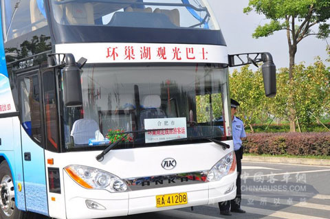 中秋、国庆假期首日,环巢湖旅游观光巴士开通仪式在合肥市滨湖新区新包河大道与环湖北路交口举行,这意味着合肥市民及外地游客今后可以乘坐安凯观光巴士畅游八百里巢湖了。