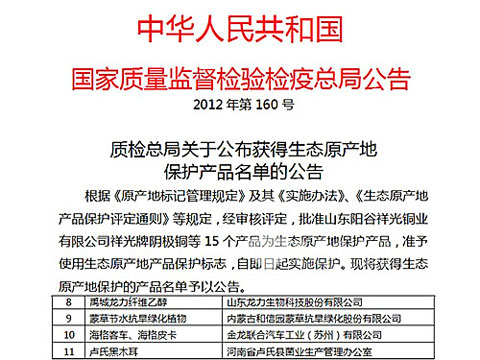 据了解,“生态原产地产品”是指产品全生命周期符合绿色环保、低碳节能、可持续发展要求并具有原产地特征的良好生态型产品。生态原产地产品认证是由国家质检总局和中国生态道德教育促进会共同创建的一种崭新的认证形式,它顺应了当今世界生态环保的潮流,以“生态”理念赋予原产地产品崭新的时代内涵,从而更加有效地保护产品的国际市场竞争力。