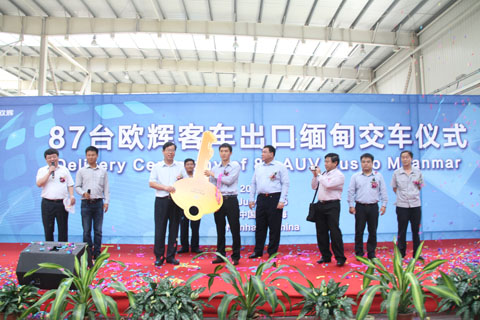 2013年7月13日,在福田欧辉客车广东工厂举办了87台欧辉客车出口缅甸交车仪式。福田汽车集团副总裁、欧辉客车事业部总经理解佃峰将一把象征着出口缅甸奥肯博公司的欧辉客车模型钥匙交到了奥肯博公司董事长姜建华的手中,标志着“福田欧辉客车出口缅甸奥肯博公司大客车交车仪式”取得圆满成功。
