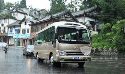 动力方面,搭载3.0升柴油发动机,采用最新第三代电子式高压共轨引擎,实现1800bar超高压燃料喷射,接近完全燃烧,是适应高油价时代的经济引擎。采用先导喷射大幅度减少振动和噪音,使驾驶更舒适。其最大功率为150马力,最大扭矩为579牛.米,整车最高车速可达每小时132公里;得益于强大的输出扭矩,爬坡能力也远优于同类车型而在1档时的爬坡性能达到了55.5%。0到80公里的加速时间仅为22秒。通过市场调查,四川现代增加了康恩迪后桥规格,在原有主减速比3.692的规格基础上,增加了主减为3.417燃比性选配规格,从而提升了燃比性及最高车速性能。