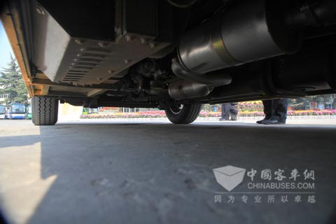 校车的座舱位置设计较高,下部均为整体式钢性纵梁