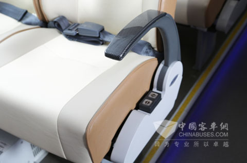 除了一键换新风功能,乘客座椅上方还有话筒插孔,方便乘客拿话筒与车内人员自由交流。