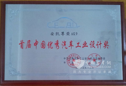 安凯尊荣AK9荣获“首届中国优秀汽车工业设计奖”
