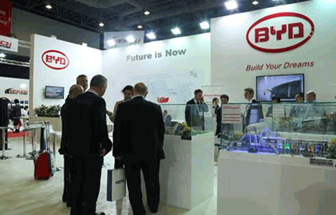 2014年4月24至27日,比亚迪携旗下多款电动大巴震撼出击在伊斯坦布尔举行的世界客车博览土耳其展会(BusworldTurkey)。比亚迪位于2-B04展台,此次展品包括8.5米,12米和18米(铰链式)的单层电动大巴,及全球首款纯电动的双层大巴。