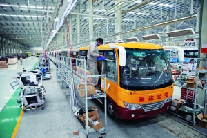 图为奇瑞万达贵州客车股份有限公司总装车间客车装配线。(资料图片)