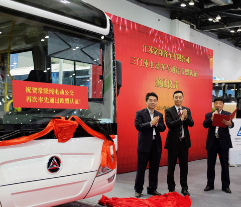 常隆三门纯电动城市客车通过欧盟认证颁证仪式