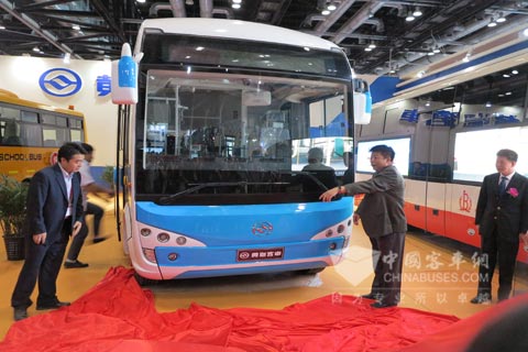 被称为"i-Bus智慧中国号"的黄海DD6125CHEV1的客车,是融合黄海新能源客车技术和现代信息通讯技术的产物。在此次车展现场,黄海i-Bus智慧巴士车体两侧的嵌入式全彩车载LED显示屏一直在播放视频,极其醒目。