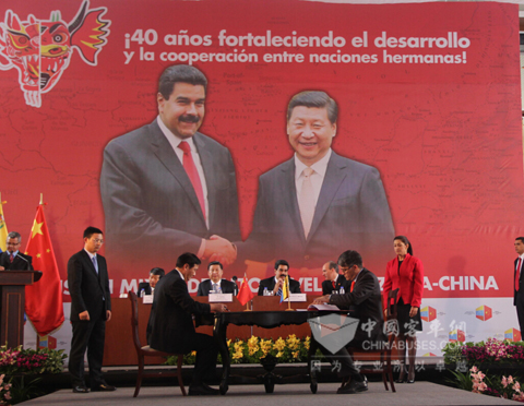 委内瑞拉当地时间2014年7月21日上午12:15分,在中国国家主席习近平和委内瑞拉总统尼古拉•马杜罗共同出席下,我国客车制造商宇通客车与委内瑞拉签署了包含1500台宇通客车、配件、工具、维修及智能公交运营管理系统等的备忘录。此外,根据委内瑞拉的需求,宇通客车还与委内瑞拉工业部、陆路交通部签署了关于在委内瑞拉合资建设客车工厂的框架协议,未来委内瑞拉有望出口本国生产的客车到南共体(南美国家共同体)等市场。