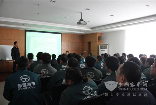 2014年,恒通客车在加强对员工的培训方面做了非常多的工作,今年依旧要坚持。正如恒通客车董事长兼总经理谢跃红所说,一个项目的推进,需要全体上下共同努力,不是单靠哪一个部门就能做好的。哪怕你是后勤部门,也对生产工作会产生至关重要的作用,一个不负责任、懒散的后勤部门绝对会影响到一线员工的工作态度和工作积极性,而这一后果将在产品中体现。我们的要求是对全体职工的要求,要求全公司各部门没有一块短板。