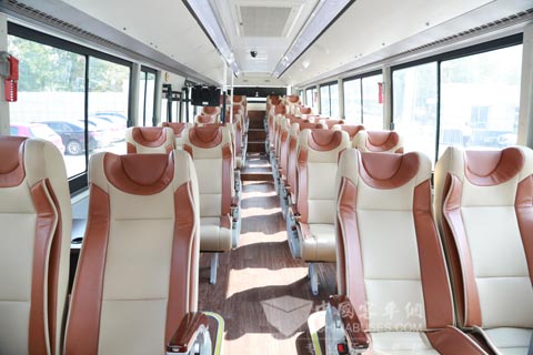 都市e巴的第二个亮点,就是其人性化的设计让每一个乘坐者都有高端VIP客户感受。都市e巴采用欧款时尚造型,辅以整车人性化配置及豪华定制级装配,高档底盘、豪华内饰、真皮商务座椅、冷暖一体电空调、NVH静音技术,极致细节锻造一流品质,构建尊贵奢华、静谧舒适的头等舱驾乘体验。车内设置的办公桌可处理临时文件,商务随行;车内WIFI、每个座椅配备的USB充电接口及置物架,使乘客实时享受上网冲浪的无尽趣味。可以说,福田欧辉都市e巴,就是“客车中的贵族”的代名词。