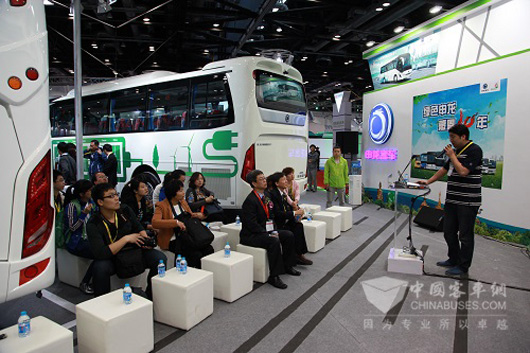 本次参展的SLK6108是一款纯电动团体客车,该车采用45+1+1的座椅配置,对整车空间合理运用,而且更好的增加载客量。本车装载160KWH的磷酸铁锂电池,保证整车动力性和超长的续航里程,每公里电耗低至0.68KWH。作为在团体旅游市场的新能源产品,在去年年底面世至今,已累计销往上海、南京等地,深受客户的认可,相信在本次展会上必将大放光彩