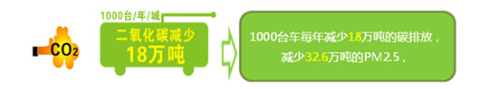 用1000台纯电动在线充每年可减少18吨二氧化碳的排放,减少32.6万坉的PM2.5。