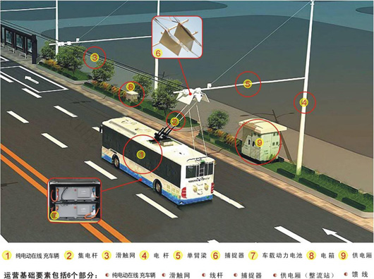 对大公交客车而言,在公交线路上直接借用空中很短的滑触网,司机一个人自助充电的方式非常便捷,与公交企业运营特质较为吻合。其他的充电方式,对公交企业而言,太不方便。
