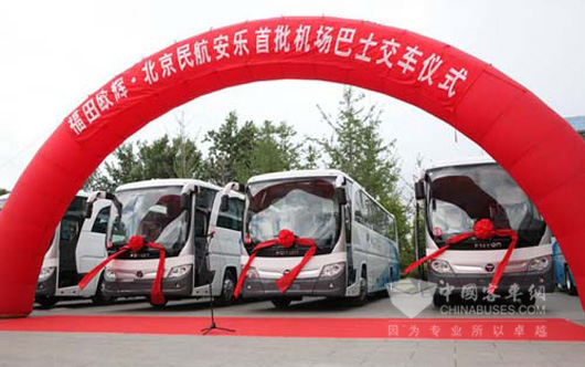 2015年6月19日,“福田欧辉北京民航安乐首批机场巴士交车仪式”在福田欧辉客车北京工厂顺利举行,来自福田欧辉以及北京民航安乐出租汽车有限公司的领导出席了此次活动,双方就产品、运营保障及未来的合作方向发表了各自的观点。