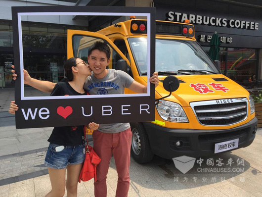 2015年7月13日,上午11点—晚上7点,海格校车与知名打车软件Uber与网络电商1号店牵手,在苏州投下8辆海格龙驹校车,从事了一项点亮全城的“神秘”工作。