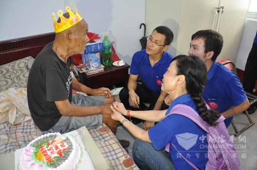 2015年7月10日,是李明海老人的生日,志愿者提前为老人准备了生日蛋糕,老人连声赞道:“中,可甜!”