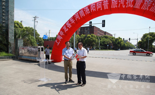 2015年7月28日,上海申龙客车有限公司携手河南洛阳阿普旅游汽车租赁有限公司(以下简称“阿普旅汽”)在申龙公司厂区隆重举行了批量豪华旅游客车交车仪式。
