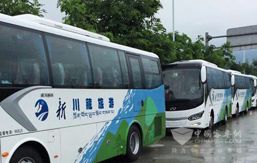 2015年7月,新川藏运业将2015年第二批XMQ6901开回家,火速上牌,现在已忙碌穿梭于成都至康定、九寨沟等四川主要景区的旅游路线上。XMQ6901虽非高原车型,但与XMQ6821是“直系血亲”,同样满足制动气压1.0Mpa的标准,汽车的制动力得以大幅提升;针对高原高寒的特殊环境,搭配燃油预热、独立水暖、低温保护等系统。另值得一提的是,XMQ6901后悬架采用L型结构,兼顾了整车布置空间与侧倾角刚度的需求,目前此技术属大金龙专有。