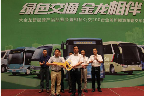 2015年8月13日,大金龙新能源产品浙江品鉴会暨200辆新能源车交付仪式在浙江绍兴举行。