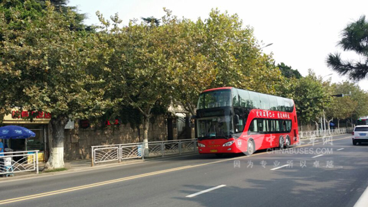 “前期经调研,大连、桂林、北京等城市选用车型与青岛相同,都为亚星JS6130SHA型双层豪华旅游观光专用巴士,车辆总长12.7米、宽2.55米、高4.18米,全车重24.6吨,内设61个座位,最大载客量127人,采用无级变速系统,气囊减震装置,内设空调。”温馨巴士负责人说,其中,车内下层为一级踏步,方便乘客上下,装备了桌椅,上层突出观光功能,玻璃幅面较大,配有安全栏杆,设有报站显示屏、GPS定位、自动语音报站器和车内监控器、硬币鉴伪仪等设施,日常使用较为方便。然而真正吸引温馨巴士的还是其大气的造型,能体现出城市的美感。