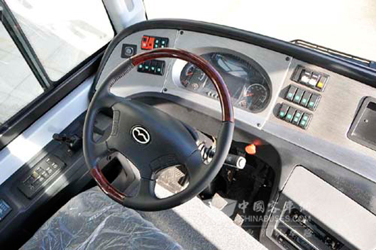 据了解,新品FDG6112EV为了完善驾乘体验,多项先进技术和人性化设计也被应用其中。在驾驶室内,可以注意到该车仪表台已从以往筒式仪表台过渡到了轿车化的仪表台,透过仪表台能够更清晰准确的解读车辆信息,有助于减轻司机驾驶疲劳,从而提高了驾车安全性。与此同时,其在整车关键部位的自动喷淋灭火装置以及侧窗自爆系统按钮的科学编排和应用,使车辆主动安全性能得到了全面升华。纵观全局,纯电动通勤车FDG6112EV无论从车内到车外可谓是独出心裁、面面俱到趋于完美;五洲龙精益求精的造车技艺、永不言败的创新精神再一次铸造了行业新的典范。