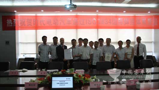 2015年8月26日,第三方认证机构必维国际检验集团(简称BV公司)在时代电动进行了ISO3834证书的颁发仪式,此时,时代电动正式成为中国客车行业唯一通过国际焊接体系认证的企业。