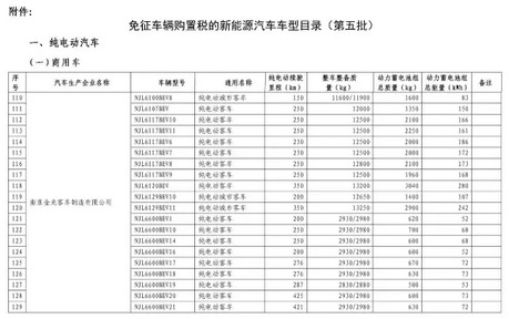 2015年9月11日,工信部发布第五批免征车辆购置税的新能源汽车车型目录,在纯电动客车方面,共有276款车型入选,其中南京金龙46款,占比16.6%,是入选车型最多的企业。截止到目前,南京金龙共有93款纯电动车型入选免购置税目录,创下行业之最