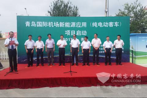 “青岛机场能够率先推广新能源汽车,于社会而言不仅仅是做到了节能减排,更重要的是起到了示范带动作用。”青岛市交通运输委员会副主任、市道路运输管理局局长赵海滨这样评价青岛国际机场新能源应用(纯电动客车)项目启动的意义。值得一提的是,青岛机场第一期心能源应用(纯电动客车)项目包括12辆宇通纯电动客车、2500平米充电站(包括20个客车充电终端和6个乘用车充电终端)和机坪VIP贵宾接送工作链条等。