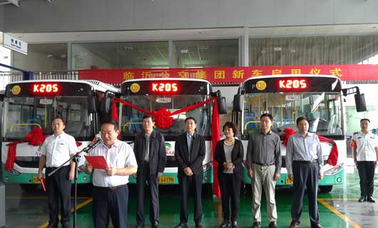 2015年9月30日上午11时,新车启动仪式正式开始。临沂市政府、交通部门、临沂公交集团、中通客车等相关部门领导出席了新车启动仪式。启动仪式上,市领导充分肯定了临沂公交近年来对“构建现代交通运输体系”所做出的贡献,并鼓励其在新能源公交的发展上更上一层楼。