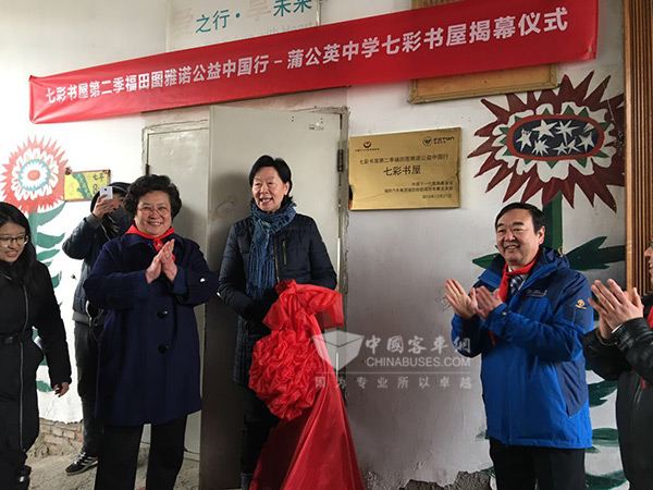 2015年12月27日,福田图雅诺公益中国行北京站来到大兴区的蒲公英中学。“七彩书屋”项目是在2014年由福田汽车集团轻型商用车发起,中国下一代教育基金会爱心速递专项基金主办的全国性公益活动,旨在为贫困地区的孩子们送去书籍和知识,帮助他们自信、健康的成长。