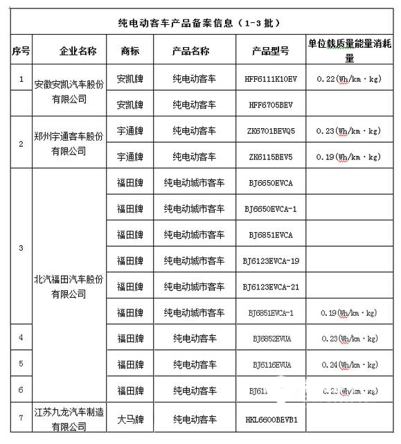 北京第三批纯电动客车备案目录公布