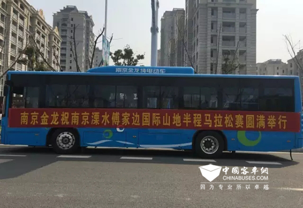 服务本次马拉松赛的南京金龙NJL6117BEV作为本届赛事的赞助商,南京金龙客车再次提供纯电动城市客车服务赛事通勤,以实际行动助力溧水马拉松打造成为“零污染”马拉松,成为本届赛事一大亮点。与此同时,致敬勇于拼博的跑者,致敬永不止步的马拉松精神,再度彰显南京金龙客车作为南京市溧水区新能源客车名片的社会责任感。