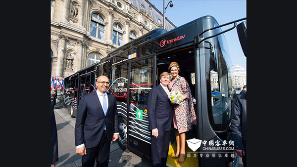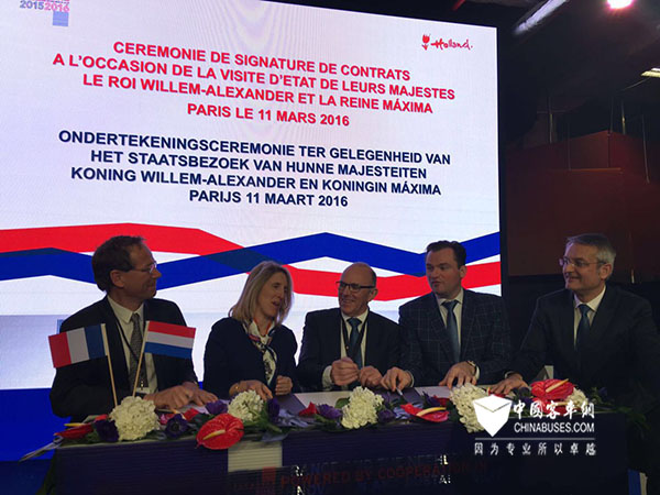 荷兰EBUSCO与法国Transdev签订合作协议此次跨国合作,由荷兰EBUSCO与法国运输公司Transdev进行,双方签订了10辆纯电动公交车的合作协议。在法国进行国事访问的荷兰国王威廉·亚历山大与王妃马克西玛也亲临现场见证签约仪式,并饶有兴致地试乘了纯电动客车,对其性能称赞不已。未来,这一批次的公交车将会投入到大巴黎地区公交线路的运营。