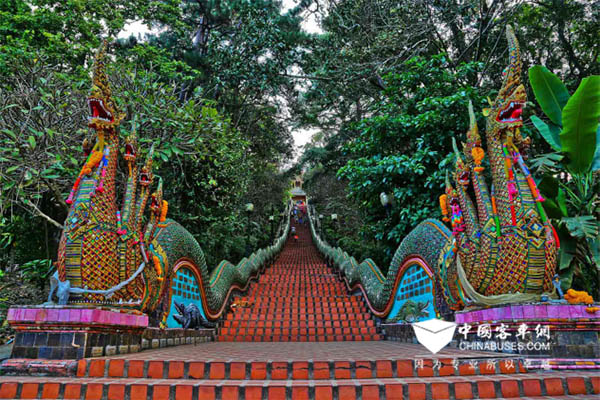 清迈著名的双龙寺,又称素贴寺,因有两条长龙在两侧台阶坐卧而得名,是泰国著名的佛教避暑胜地。