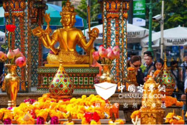 泰国大多信奉四面佛,它四面尊容,分别代表爱情、事业、健康与财运,据说能掌管人间的一切事务,也被称之为能创造世界的佛祖。每天,都有络绎不绝来自世界各地的信徒前来朝拜。关于它有求必应的故事,待你在曼谷慢慢倾听。只是,若你也实现祈求支之愿,不要忘记带上祭品到此酬神还愿。