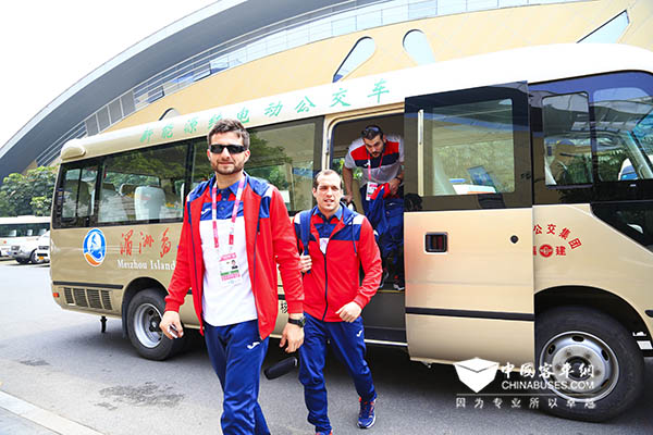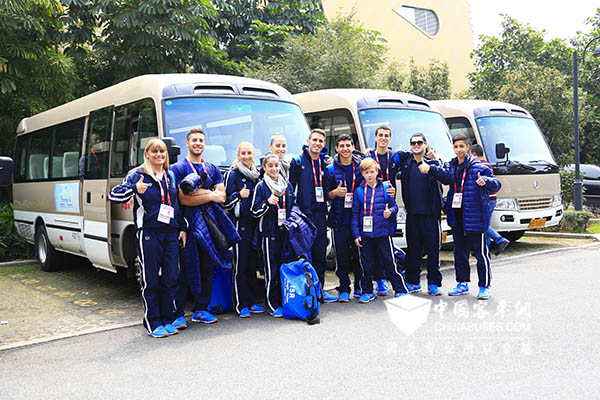 来自世界各地的运动员对金旅新能源车赞不绝口