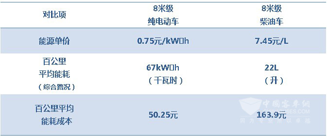为什么此款车会被武汉公交集团选用,并大规模上线呢?答案是:节能省钱,看看下面威虎G1与同等大小柴油车的能耗比图您就明白了。