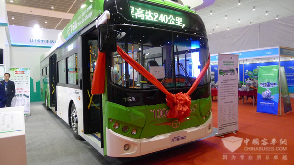 在换电演示中,通过专用的顶置换电用时45秒换电结束。同时该车选用低地板结构(离地最小距离150mm),使得乘客上下车更为方便,在人性化设计上具有残疾人上车辅助功能。