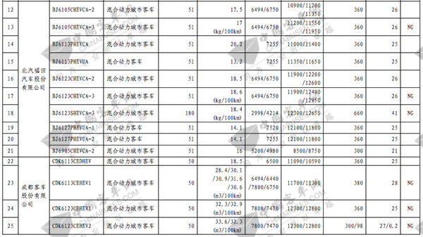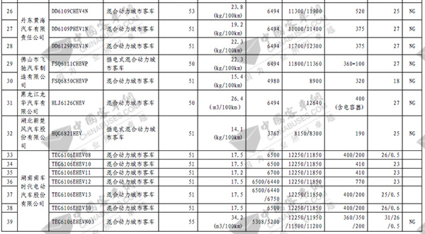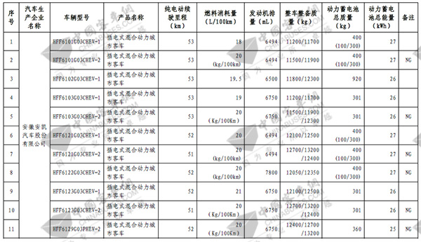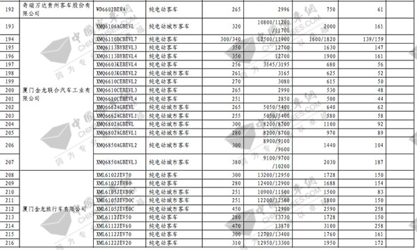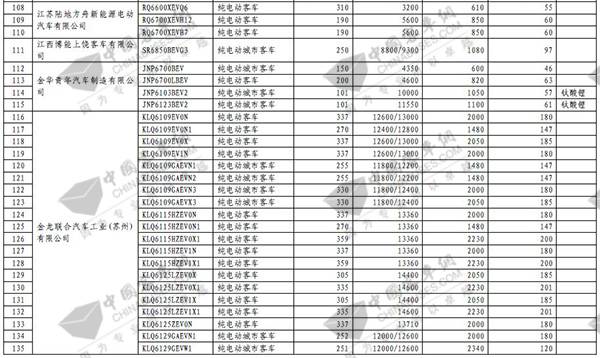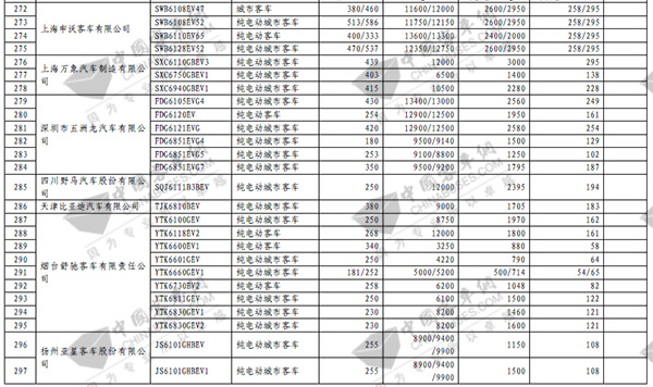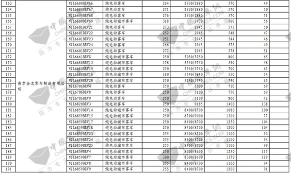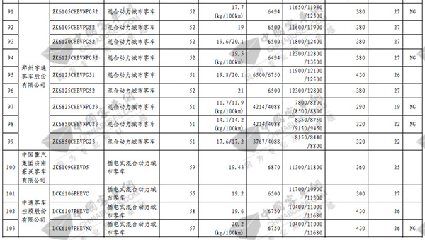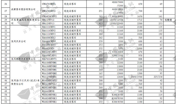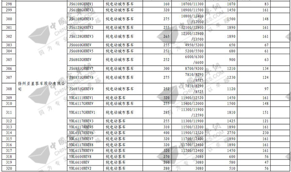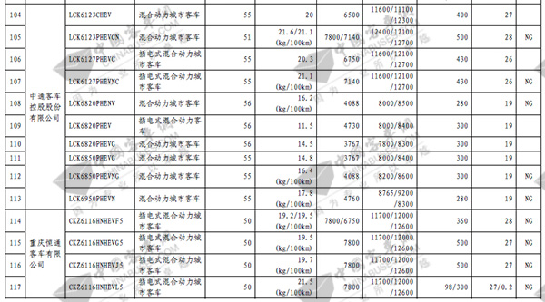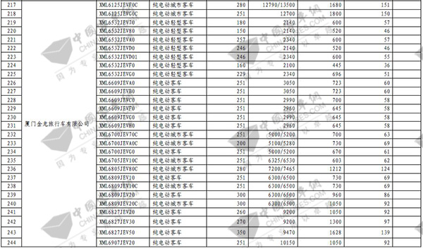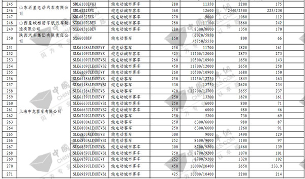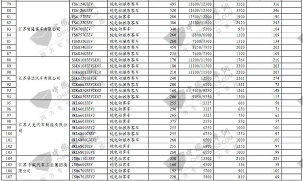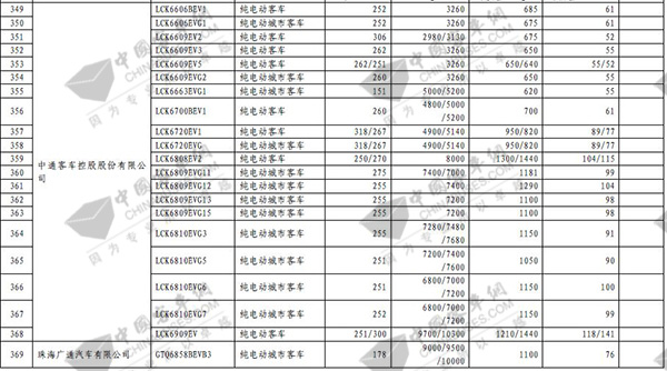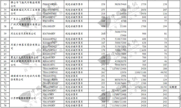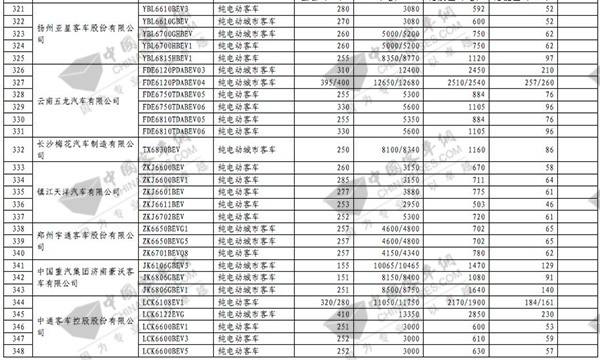 第七批免征购置税新能源汽车目录之客车榜