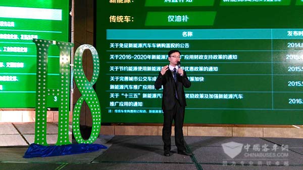 宇通H8插电混动公交产品负责人周宝介绍相关技术
