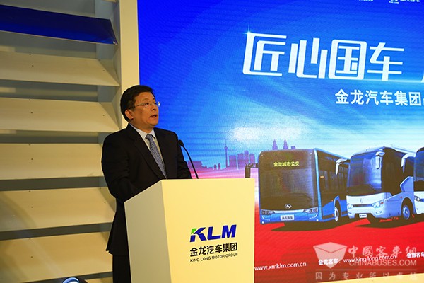 金龙汽车集团董事长黄莼为发布会致辞“精品匠心”书写中国客车腾飞梦