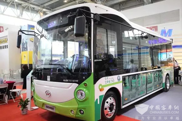 展会现场的混合动力公路大巴车