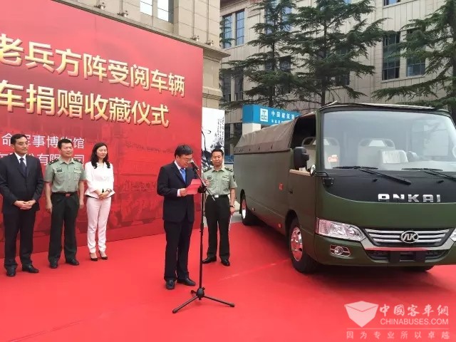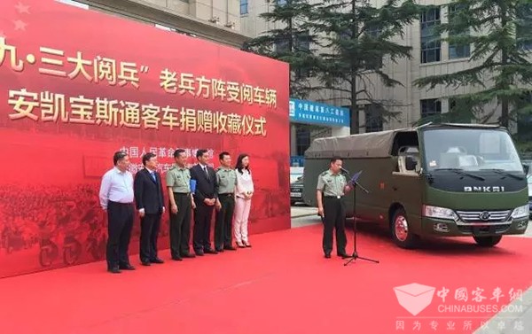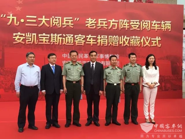 2015年9月3日“中国人民抗日战争暨世界反法西斯战争胜利70周年大阅兵”,安凯宝斯通承载抗战老兵接受全世界人民的检阅,更是具有重要的历史价值,是进行爱国主义教育、弘扬和平精神的生动载体。因此,国家军事博物馆收藏这辆安凯宝斯通受阅车,不仅是安凯客车的极大荣耀,也是中国客车业制造业的极大荣耀。
