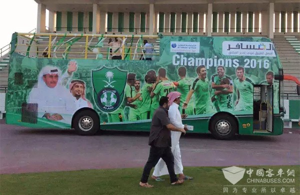 2016年5月13日当地时间晚9点,沙特阿拉伯阿卜杜勒·拉蒂夫·贾米尔联赛决赛(Abdul Latif Jameel League)在吉达阿卜杜拉国王体育城(King Abdullah Sports City)拉开序幕,亚星客车豪华双层巴士助力阿尔阿赫利球队(Al Ahli)一举夺得桂冠。